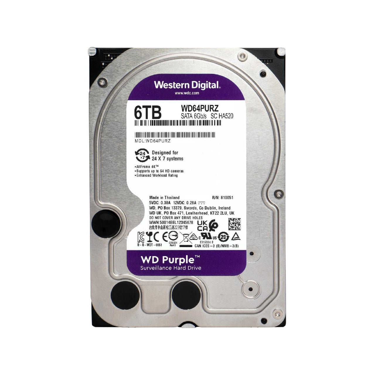 6 TB WD Purple Surveillance Internal Hard Drive HDD SATA 6 Gb/s, 256 MB Cache, 3.5" WD64PURZ
