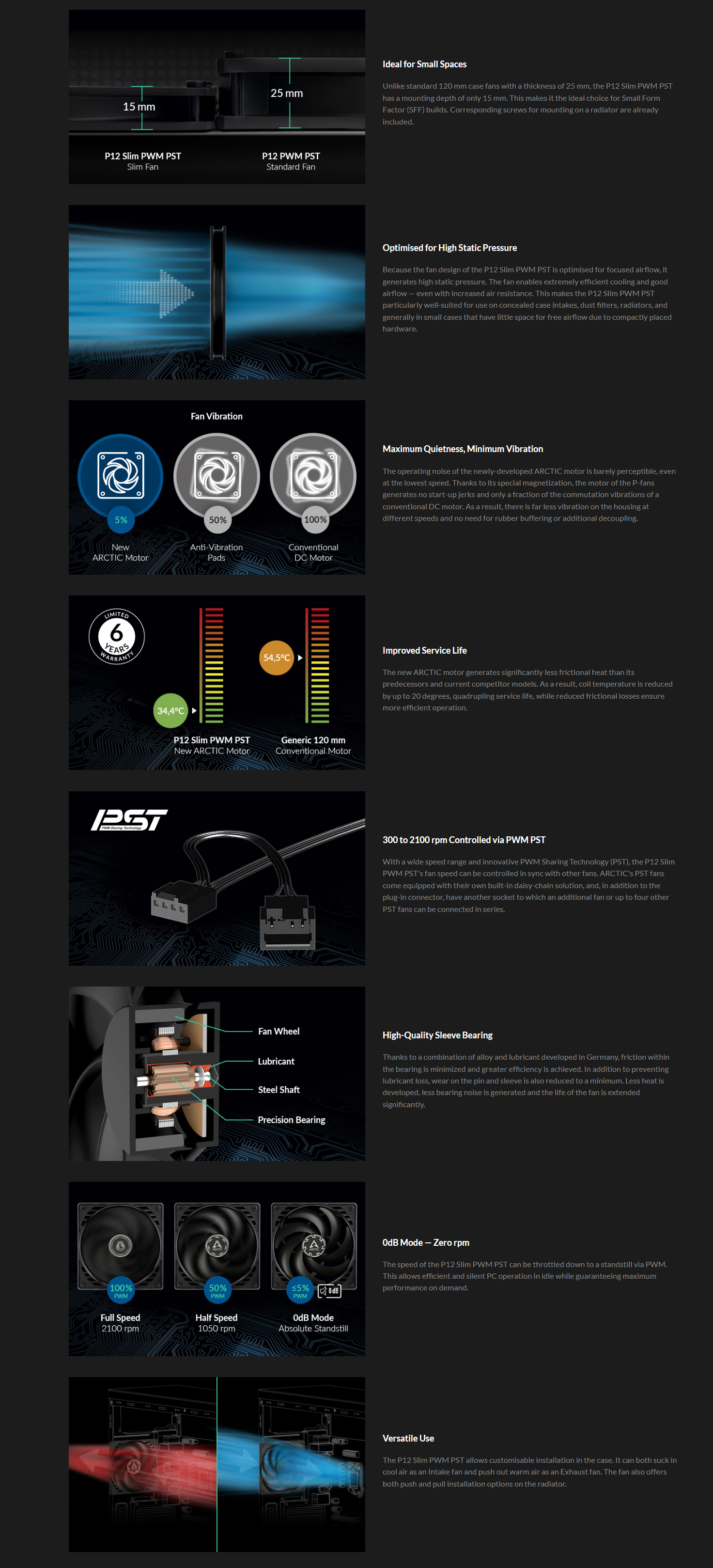 Arctic P12 Slim PWM PST 120 mm | 2100 rpm | Low-Profile 4-Pin Case Fan with Cable Splitter | 3-Pieces (Black) - ACFAN00275A