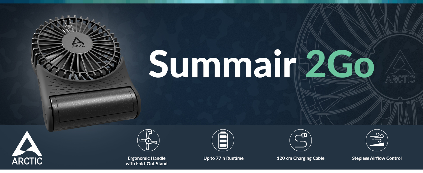 Designed for quiet performance and maximum flexibility, this fan is ideal for work, travel, outdoor events, or home use. Whether you're commuting, studying, or relaxing, the Arctic Summair keeps you cool with style and efficiency. Durable, rechargeable, and easy to carry, it’s the smart choice for portable personal cooling.