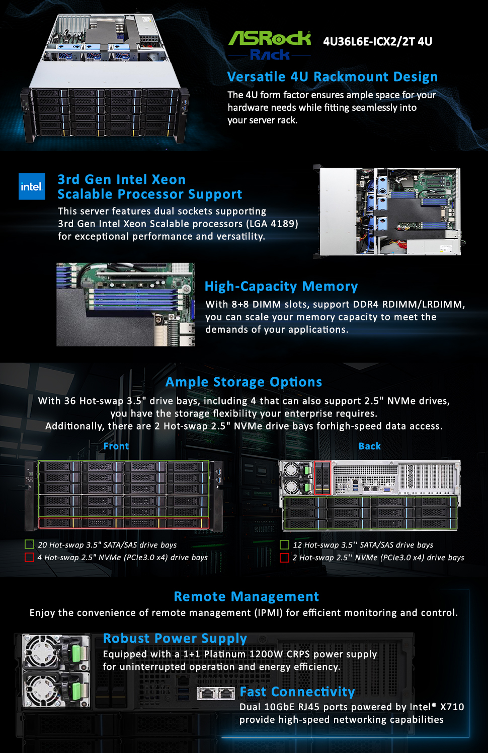 ASRock Rack 4U36L6E-ICX2/2T High Performance 4U 36 Bay Dual Intel Xeon Scalable Socket 4189 Storage Server