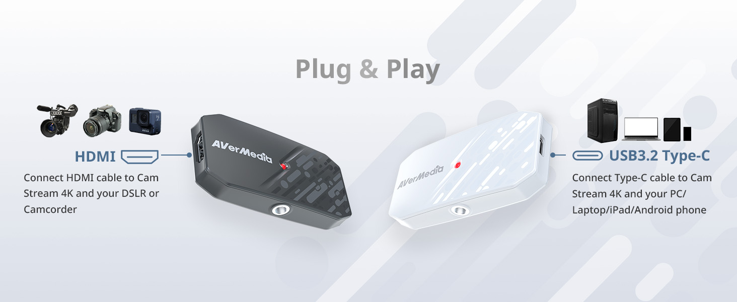AVerMedia CamStream 4K White 4K60 HDMI Capture Card-DSLR, Camcorder, Action Camera, Low Latency for Streaming & VC BU113G2