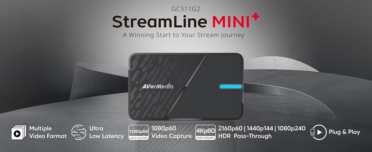 AVerMedia StreamLine MINI Capture Card - 4K60 HDR Passthrough, 1080p60 Video Record, Ultra-Low Latency Streaming GC311G2