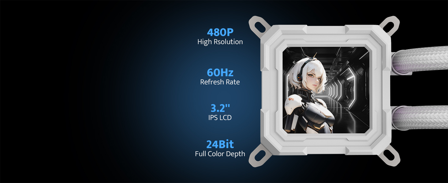 Upgrade your cooling performance and aesthetics with the DarkFlash DF-DV360S-WH 360mm Liquid CPU Cooler in White. This premium all-in-one (AIO) solution features a sleek white design and a customizable LCD screen that displays real-time system stats or personalized images. With a powerful 360mm radiator and three high-performance ARGB PWM fans, it delivers efficient heat dissipation while enhancing the visual appeal of your build.