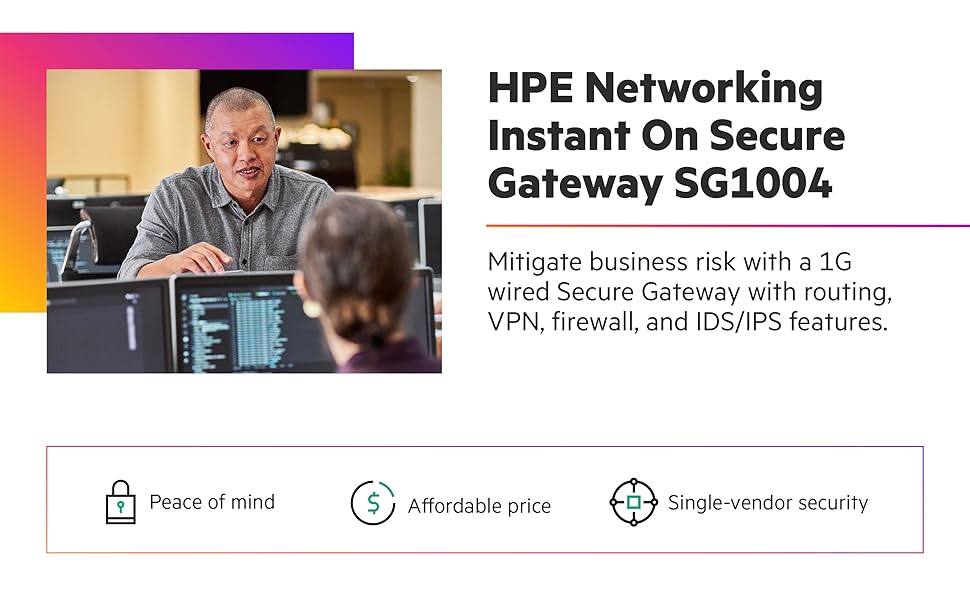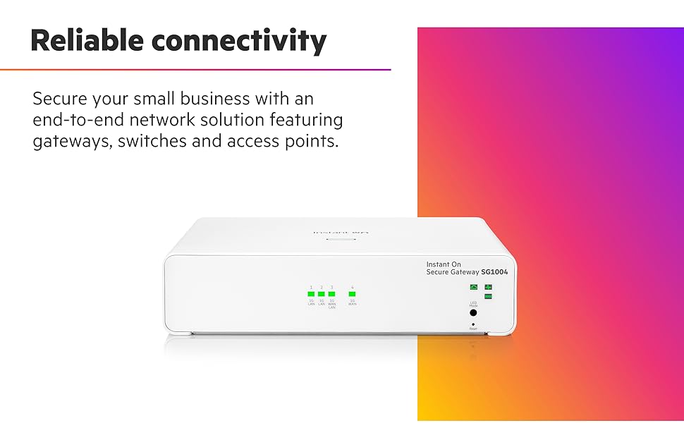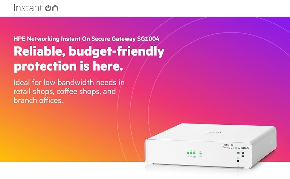 Perfect for retail, hospitality, and remote offices, the HPE Instant On SG1004 delivers reliable connectivity with zero-touch deployment and simplified management. Its compact design saves space while providing enterprise-level features without the complexity. Whether you're upgrading an existing setup or deploying a new network, this gateway is a smart investment in secure, scalable performance.