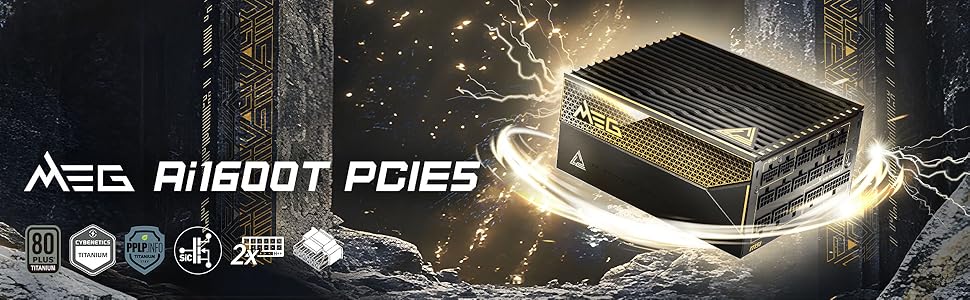 MSI MEG Ai1600T PCIE5 ATX 3.1 1600W Gaming Power Supply, Full Modular, 80+ Titanium Certified, ATX PSU MEGAI1600TPCIE5