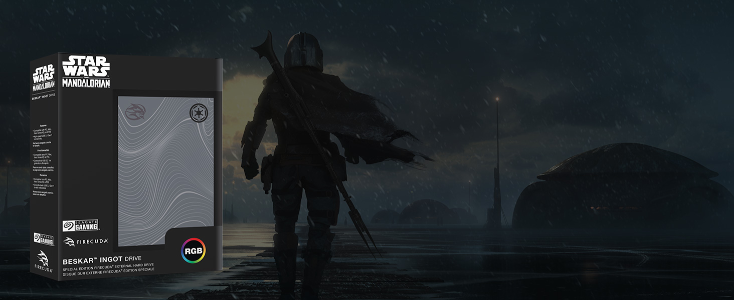 Receive the ultimate reward for your bounty with the officially-licensed Beskar Ingot Drive. This Special Edition FireCuda External Hard Drive comes forged with a beskar ingot design and features custom Mandalorian-inspired blue LED lighting right out of the box.